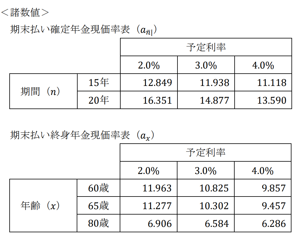 ・年金額は、一時金原資を給付利率 の年 1 回期初払い 10年確定年金現価率で除して得た額とする