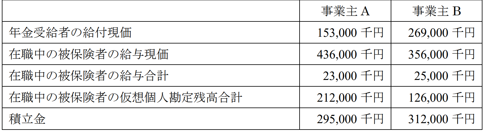 ・事業主 A、B ともに、財政方式は 20 歳を加入年齢とする加入年齢方式であり、予定利率は 1.5%である。