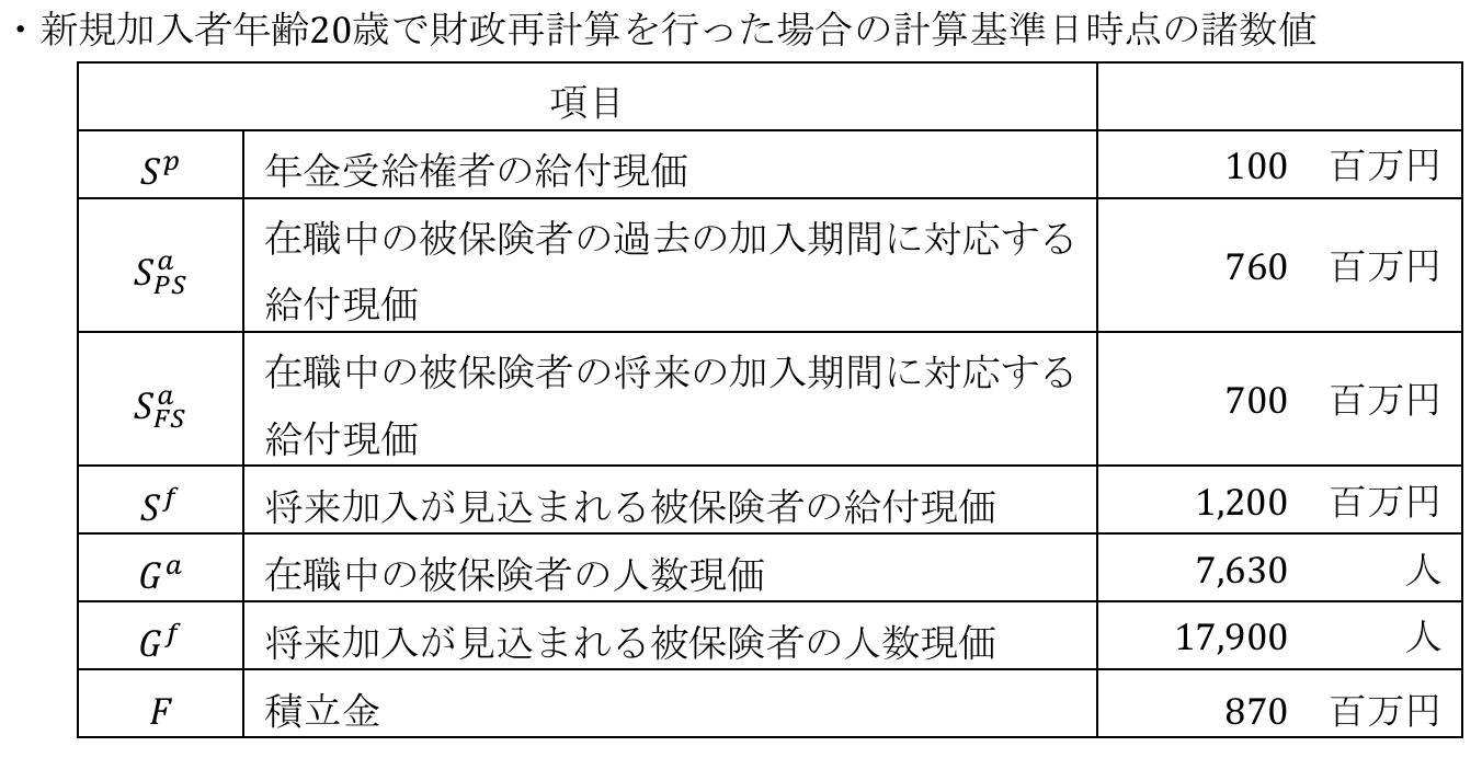 といった条件から制度変更後の財政再計算直後の新規加入者の見込みは同様に